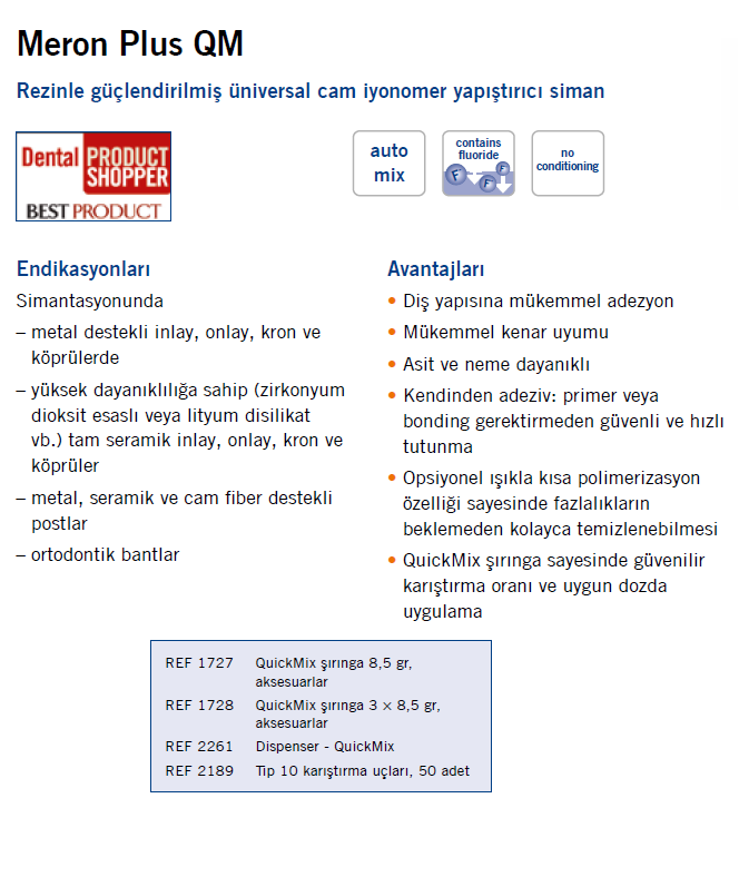 Meron Plus QM 1x8.5 gr Rezin Cam İonomer Yapıştırma Simanı Meron Plus QM 1x8.5 gr Rezin Cam İonomer Yapıştırma Simanı ürününü en uygun fiyattan ve taksit seçenekleri ile Merkez Diş Mağazasından satın alabilirsiniz. 1727